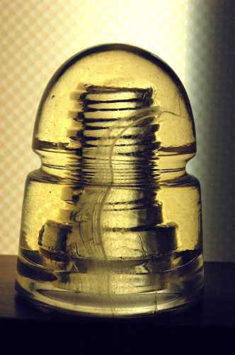 These "golden boys" (as they are sometimes referred to by collectors) quite often will have a swirl of milk or other impurities ON the glass as well as inside it, as this one does... you can see the swath that travels from the base to the dome. Neat old piece! |