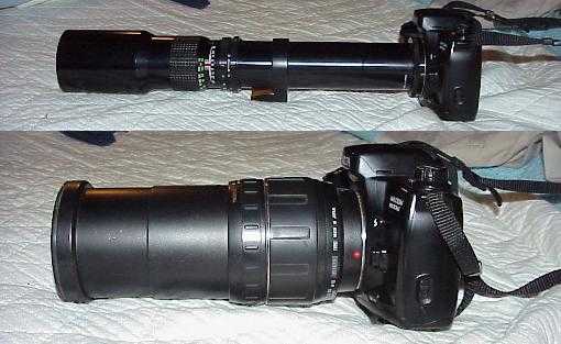 Have you ever gone on an insulator collecting trip, and could tell what CD you're seeing, but can't tell the embossing? Too many times it's happened to me! Unsatisfied with the 12x power of my digital camera/binoculars, I searched the ePlace for SLR camera lenses and found exactly what I wanted! a 500mm telephoto lens to fit my Minolta Maxxum 600si film SLR. Contrasted above is my original 28-300mm lens fully extended vs. the new 500mm lens. Retail is normally ~$200 for this size lens, factory new; item cost, shipping and insurance: $35.50. If we could only find insulator deals like this! :-D |