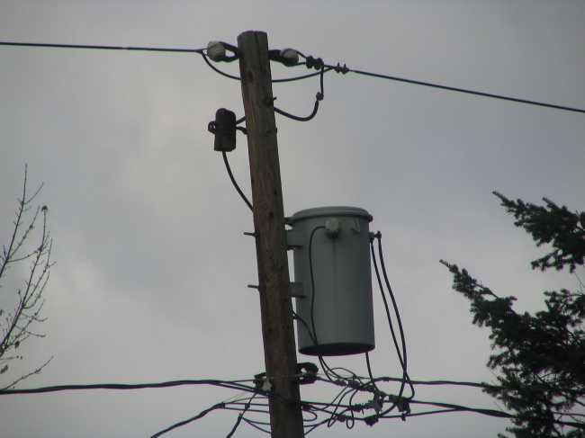 I like the enclosed cutout. The primary line is run at 2.4 kV and stepped down to 120/240 at the transformer.