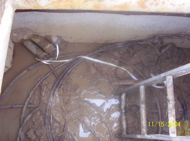 The string from the other vault which we are blowing from. Wires in this one but the are grounded. Found a large black widow in her size of a dime!.