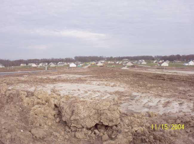 Here's the part of the subdivision we are working on, it was so wet we couldn't drive a 4x4 truck with the compressor on it so we loaded it up and hung it on a Excavator and had it hanging 25feet in the air to blow the other lines.