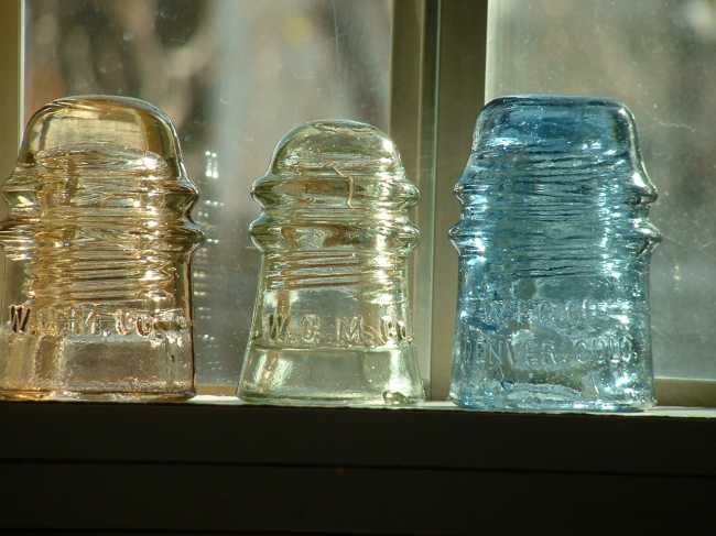 These little curved skirt Denver ponies are among my favorites, especially this piece. They seldom come up for sale in the most "common" light purple shades .( I only saw two for sale at the 100 table Denver show in August) and this is where they made 'em! I was able to fulfill my goal of finding one of these in the wild back in July, lt. purple of course, and as near as I can tell, the single pair, two-wood-side-brackets per pole phone circuit I worked was removed and strewn aside sometime before 1942. My find was just visible on the forest floor where 60+years of pine needles nearly buried it forever. |