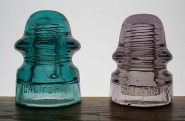 Here are two nice recent acquisitions. Both are currently unlisted. On the left a CD 166[020] (straight sides variant) in blue with a long milky worm in the front. On the right is a CD 161[020] signal in lilac -- a bluish purple which is very different from the typical reddish purples. These "newly discovered" finds did not come off some long forgotten line, but out of collections of .....ICON members!! I will be coordinating a major combined display of California and C.G.I.Co. insulators at the 2005 National. It will have numerous unlisted and seldom seen Cals in a killer-killer display that we hope can surpass the combined display of the 1981 Sacramento National. We expect to have major pieces on display from the Dave Hall, and former Lenny Philbrook collections that were on display at the 1996 Long Beach National. If you are coming out to San Jose, please let me know if there is anything you can contribute. You would be surprise at what you have. |