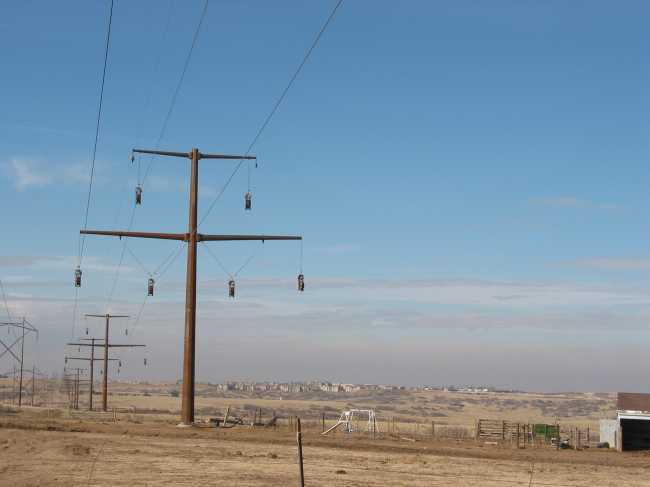 New power line under construction, just south of Denver. Notice huge pulley wheels.