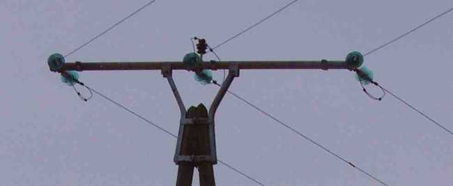 A close view to the Sediver 10 KV insulators, the ceramic pin insulator is a rosenthal.