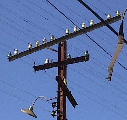 This pole is at Moron station. Hemi 42 on left top arm as well as MINCOM 154's in light green/off clear. Second arm has 152's that could have passed for Brookfield. Other power services in town looked like Hemi blue 134's.