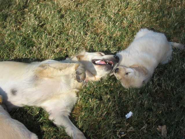 My friend named the pups, just until they are adopted (bought) "Round 1,2,3,4,5,6 & 7" This is Mom "T K O", playing with Round 4, I think?