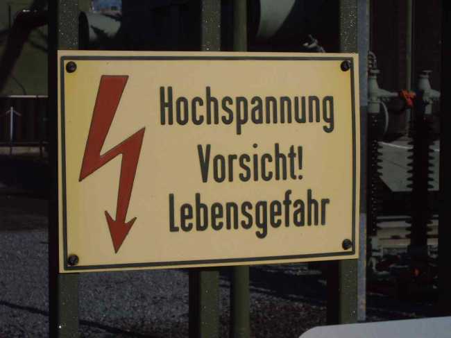 Here's an older warning sign on a gate to the substation.