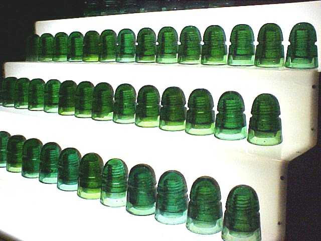 Here's some of the green B CD 145's we've plucked in the last few years. There were more but we still couldn't fit them all! We recently purchased this display from Mark & Elaine Corriero and are having a blast examining all of our beauties. Mark is a top notch cabinet maker / carpenter and if you get a chance and can afford it - purchase one of these! This type of lighting brings out the true color and all the impurities. |