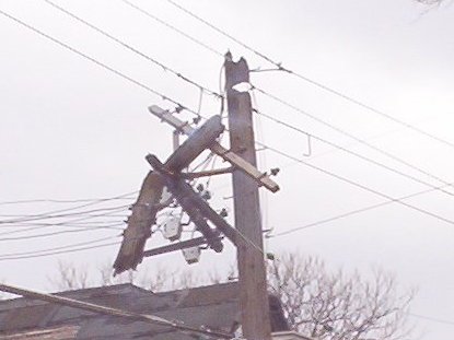 Well today while in college we were making batch files and my lab partner had made one to display a simple error message. Well he called people around and when he pressed the enter key the lights started flickering and finally shut off. We all looked at him for a moment like OMG what did you do. Well a little later the lights came back on. The class was ended and i had found 3 fire alarm insulators next to school. Well i went to go take a picture of the pole and looked the other way to see a burning pole. This is the reason the lights went out and it was still burring so i pulled over set up the tripod and started taking pictures. It was cool to see but no one knows why or how it happened. It just up and went i guess thought there was no insulator on the pole down and the wire fell onto the 220v. Here's a series of pictures. Was really cool how it burned into the wood, the wires. |