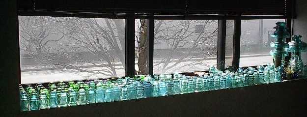 pic of my window here at work with all my script and loopy Hemingray 9's, plus a box of greens.