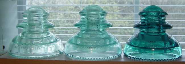 Here is a line up of No 2 Provo's showing the colors ice aqua (ice green in the pg?), light aqua, and aqua. Looking at the V.G.Converse I'm quite sure that it is also ice aqua which is not listed. Nice Piece!!!! Here is a picture of the ice aqua provo with two other ice aqua Hemingray pieces. [id=116424065] |