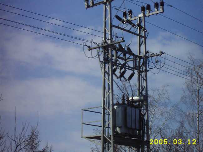 A newer transformer pole
