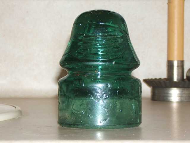 Well many of you may have originally seen this insulator back in November, and I had some requests to see a better picture of it, so here it is. The insulator has really weak embossing, so I can't get a real nice picture of the embossing, which kind of sucks. Well I guess I will tell you the story behind this. I got it in November from some friends who went for their vacation in the US ( I live in Canada) and they said they would bring me back some insulators. I told them not to pay too much. They gave me a box of insulators at my birthday, which was not long after they got back. When I first opened the box, I didn't know what it was. I thought it would probably be worth about 50 dollars at the most. When I got home I found out it was a CD 133.1 in Green. The awesome thing is that it has MLOD, which is NOT listed in the price guide. It is also in VVVVVNM condition. It only has 2 small annealing cracks that are on the back. I absolutely LOVE the color! It looks great on my display. |