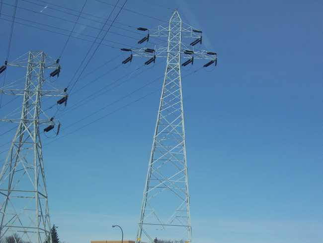 Not sure what voltage these lines are. They used to be owned by Winnipeg Hydro until Manitoba Hydro bought Winnipeg Hydro about 2 years ago.