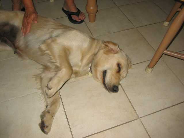 A while ago (Feb 17th) I submitted a few pics of the puppies from next door. This is their Mom, relaxing at our house.