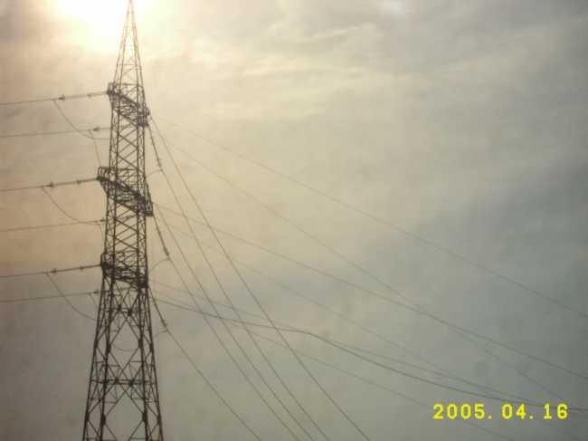 The wires are on the earth. The pole has some anchors. 3 kilometers long line are moved now, 12 poles. I took photos from train..
