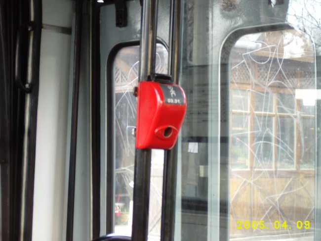 You can took onto the bus every 4 doors, you must stamp the ticket with this red thing, I have season card, I have not to use this. The controllers, if they come, they ask the tickets. It is old stamper, it makes 3 holes onto the ticket, on the newer buses, trams and on the subway are real stampers, they gives to the ticket lot of numbers, not easy the cheat there. |