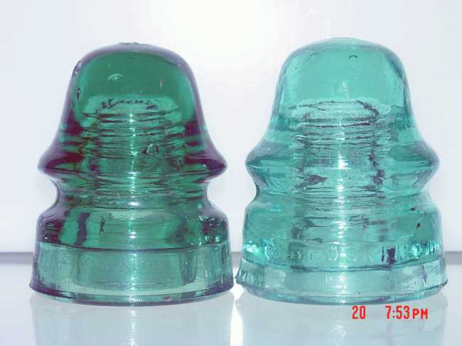 Jason Porter asked about his 162 Brookfield. Here is mine along side a 162.3. This also has the rounded bottom, inside skirt is almost flush with the outer skirt and has what appears to be the slug embossing.