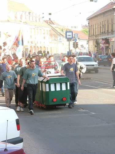 We had to go though the roman age Amphitheatre, show our team to the jury. There is our, the power provider's wood locomotive :-)