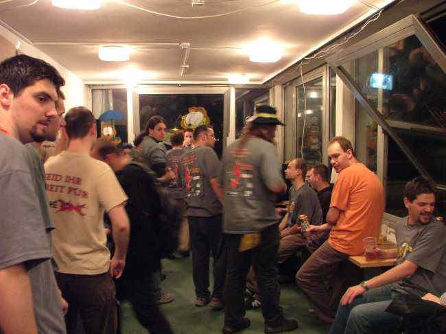 We get the problems, and we work on them here with music, beer and friends. On our T-shirts are Garfield, and back of it is a red lightning. That rival began at Friday 6:00pm, it was end at Saturday 6:00pm, we were here, rum down to the scene show our work, run up to the HQ, run out the city to do stupid things for points etc.. I was very tired at end of it :-) |