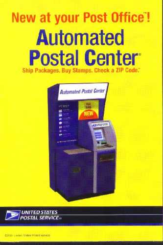 Here is my tidbit for the day. A couple of weeks ago I had to visit out local post office to send off several packages to lucky eBay winners. The line was long, ( it looked to be at least an hour wait) when a lost office employee came up to me and asked if I wanted to try the Automated Postal Center. All you need is a credit card or debit card. The machine works great. No waiting in line and no disgruntled postal employee to deal with. You put you package on the scale, punch in the zip code, choose shipping, insurance, when asked if it's a bomb answer NO, swipe your credit card and the printed postage stamp comes out. Stick it on the package and drop it in the box next to the machine and you're done. I rate it and AAA+++. Randy Wesner |