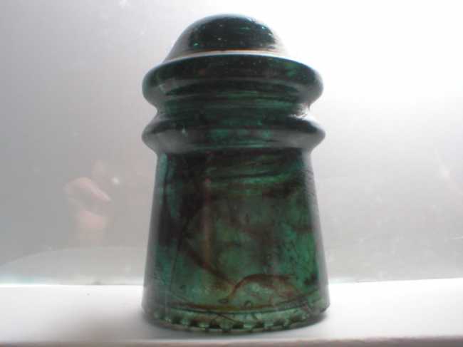 These are really cool pieces and I am going to share the "front" and "rear" views of this piece which Joe M got from Caleb Thimell back in the early 90s. Caleb was located in Columbia for some time back then and found some wonderful treasures then! He has been sharing them with the insulator community ever since; both via trades/sales and information about these and related Columbian glass. [IFONA CD 106] |