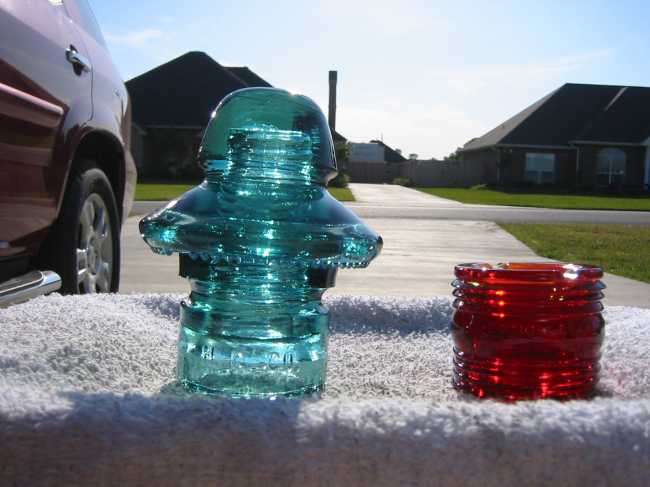 A VNM CD 196 and a neat go with "SOUVENIR FRESNEL OR SHIP RUNNING LIGHT LENS" as it reads under base and CORNING GLASS WORKS CORNING NY on the side. An awesome blood red. Anyone have an idea on the age of this souvenir?