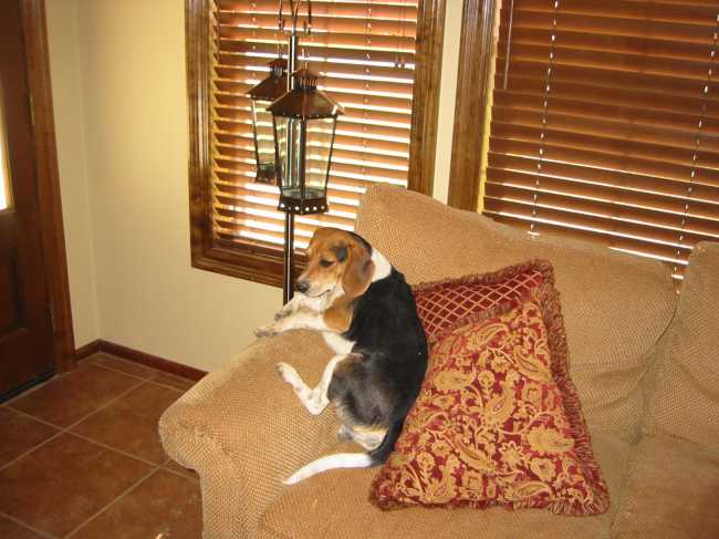 Here's where TOBY sits when he knows mom is coming home