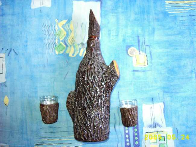 My mother made it al lot of time ago from paper masé, brown paint and dope from a beer bottle