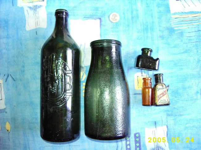 The first is an old wine bottle, the second is a margarine mottle from the WW2, the small ones are old ink bottles.