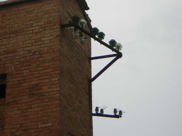 In this small substation near Pisa, still in use, I saw some insulators ready to be removed for the joy of collectors: some medium voltage green glass insulators from MIVA and FIDENZA factories (1920s), and also some low voltage MIVA BT 1 CA type [IFONA CD] |
