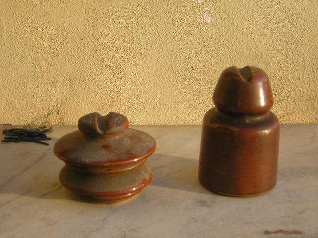 Some days ago, near Pisa town I got these two insulators, coming from an abandoned railway line. One is a small Paderno mfd by FIL in its classic light brown color, the other one is a 1-1920 in brown glaze by Richard Ginori