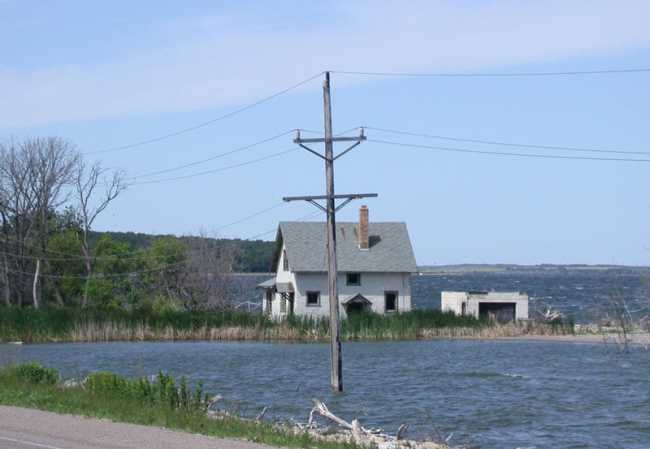A house that got flooded out by Devils Lake. It was later torched as it couldn't be safely moved.