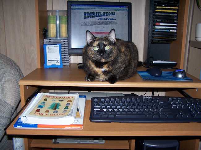 This is our cat Misty at her usual post when someone is on the computer. She is four years old, and is a great housecat !