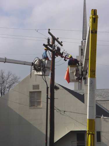 Electric Power Board of Chattanooga linemen work to change out old fuse jacks feeding an underground riser with new fuse jacks. The first one is done, two more to follow. They did this while keeping the service hot - oddly enough, it fed the building I was in so I figured I had to take a picture. This pole is now gone, less than two years later they put it all underground. |