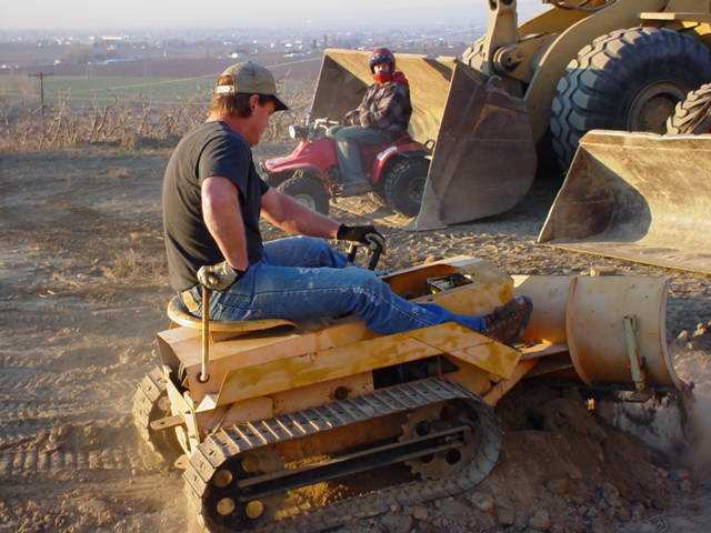 The loader bucket in the backgound makes for easy digging. The big one is a 966 Cat. the other is an old Case, 1960 vintage. The dozer is old, not sure of it's age. Show me the post holes and I'll dig em and fill em.