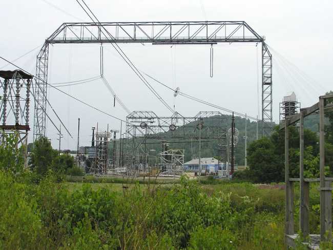Here's a shot looking through another tower into the substation complex. UPDATE!!!!! Did a little research, the name of this facility is the Electric Power Research Institute's High Voltage Test Facility in Lenox Massachusetts. Explains all the weird stuff! |