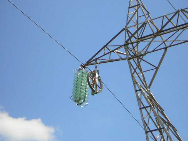 In south of Pisa province, works on a 132 kV line to change old chains. Here a detail of these works.