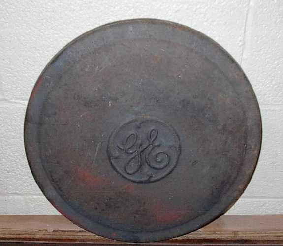 I was recently out hunting insulators in an old shut down railyard and found this large metal disk, about 15 1/2 inches in diameter, stamped with GE in middle. Any Ideas as to what it is?? It is heavy steel and has a 1/2 lip around the entire edge. Is this a train engine part? |