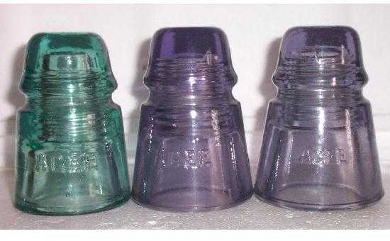 Here is a CD 420 and a CD 421 and the last one is a lighter shade of purple CD 421 . These Insulators are quite hard to come by and the lighter shade in the CD 421 is a very hard one to get, not many of these in collections.