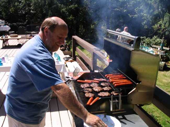 Show host Tim Wood grilling burgers & dogs for a hungry horde. We're grateful to Tim and JoAnne for hosting this swap at their home in Albany, Oregon each year. We all had a wonderful time. Thank you Tim & JoAnne!