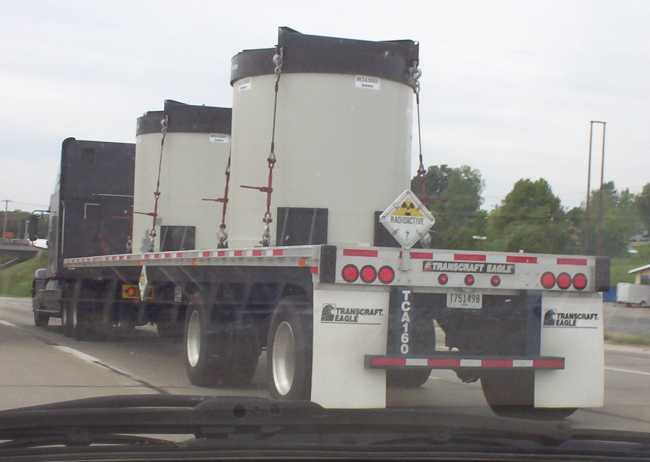 Well for the last few weeks these trucks with Nuclear Waste on the back about 6 to 8 containers a day. Well people have been upset and going on how bad it is. I really don't care but they look cool.