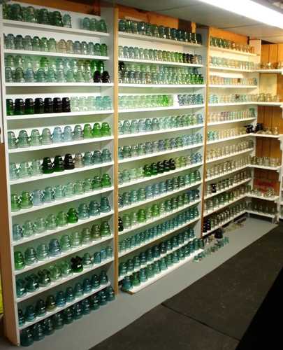 I always enjoy seeing how other collectors arrange their display. In keeping with that thought, here is a portion of my collection - the two sections of shelving to the left in the photo are McLaughlins, the rest are Whitall Tatums. There are some American Insulator Co. pieces above the McLaughlins, and Gayners below. |