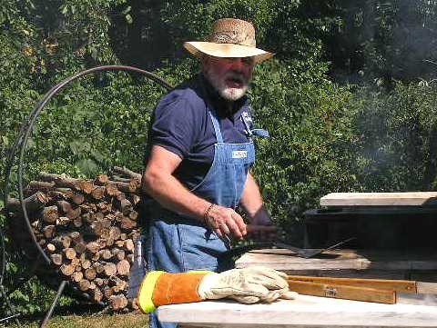 Chef Larry Emmons prepares to feed the hordes. The mob was hungry and more than expected but Larry kept his cool over a hot fire and everyone got fed some pretty good chow.