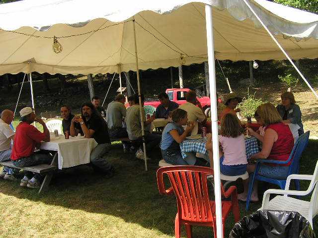 Some ate under the big tent and others sat in the gazabo. John and Larry were smart enough to know that over buying for a Pole Cat picnic is really just planning ahead. Head count for lunch was 50!