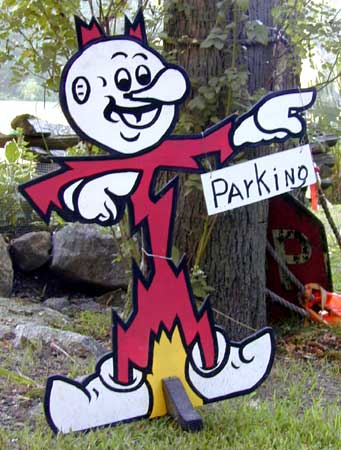 Everyone needs a good helper like Reddy. Pointing the way to the parking area in the back.