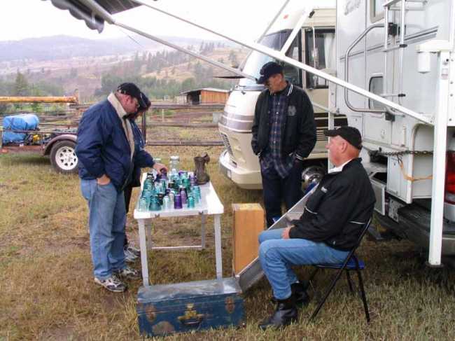 Gary Reed & Dennis Moeller (right) chat behind Gary's table.