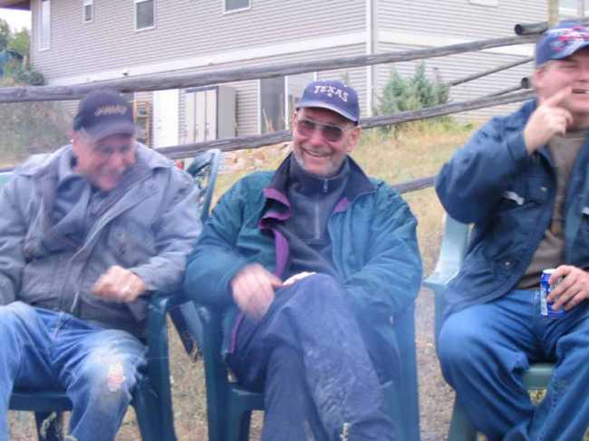 Dave Fleishman, Bob Scafe, and Randy Strong yucking it up at the campfire.
