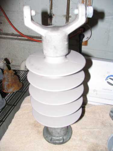 Since K-Line is a Canadian insulator manufacture, I suppose this one falls into this category of foreign insulators. This is a Silicone rubber post insulator which has a core made from a tough fiberglass rod. The end fittings are crimped to the rod creating a permanent connection. These units are the Cadillac of all polymer insulators. |